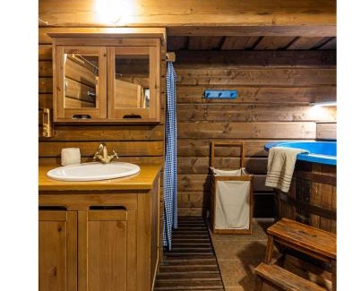 Located in Kremnicke Bane, 3.1 mi from the Krahule Ski Resort and thermal pools in Kremnica, Modrá chalúpka is a traditional Slovakian cottage with a garden with barbecue facilities on site. The cottage includes a fully equipped kitchen, a living area with a TV, a private bathroom with a traditional wooden bath tub, and a balcony. It comes with a fireplace and wooden floors. The nearest grocery store is 2625 feet away and restaurants can be found in Kremnica, 2.5 mi from the property. Bus station is 0.6 mi away and train station can be reached in a 20-minute walk.