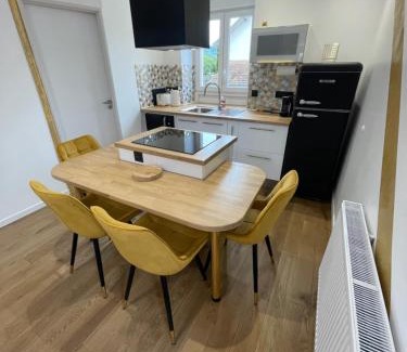 A recently renovated apartment, Mon-Doré F3 Tout Confort, PS4, Parking offers accommodations in Valentigney. Both free Wifi and parking on-site are available at the apartment free of charge. Montbeliard Castle is 6.3 miles away and Prunevelle Golf Course is 8.8 miles from the apartment. This apartment includes 2 bedrooms, a living room and a flat-screen TV, an equipped kitchen with a dining area, and 1 bathroom with a shower and a washing machine. Towels and bed linen are provided in the apartment. Additional in-room amenities include wine or champagne. Belfort Train Station is 14 miles from Mon-Doré F3 Tout Confort, PS4, Parking, while Stade Auguste Bonal is 6.2 miles away. EuroAirport Mulhouse Airport is 54 miles from the property.