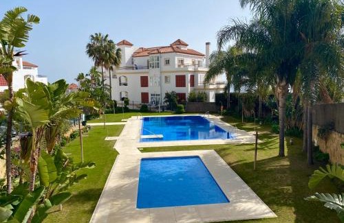Mon paradis au soleil is a recently renovated apartment in Manilva, near Playa de la Duquesa - El Castillo. This property offers access to a balcony, free private parking, and free Wifi. The apartment offers an infinity pool and an elevator. Offering a terrace and sea views, the spacious apartment includes 2 bedrooms, a living room, flat-screen TV, an equipped kitchen, and 2 bathrooms with a walk-in shower. Towels and bed linen are featured in the apartment. For added privacy, the accommodation has a private entrance and is protected by full-day security. Guests at the apartment will be able to enjoy activities in and around Manilva, like cycling. Kids pool is also available for guests at Mon paradis au soleil. La Duquesa Golf Club is a 18-minute walk from the accommodation, while Estepona Golf is 8.2 miles away.