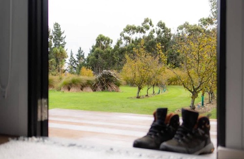 During the Autumn season, you may get a visit from our resident peacocks and enjoy panoramic views of the orchard, hills, and Alps. #CozyTinyHome #HolidayHomesNZ