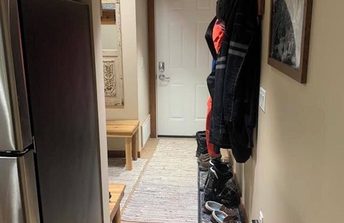 Great Ski Condo in upper village just across the road from mid mountain skiing. Fully renovated in 2019 with all new furniture, kitchen, bathroom, windows,doors, and heating system, and more. With your own outside entrance in and heated ski locker right there makes your ski day easy and enjoyable. Inside this two BR condo you get a great view of the Monashee mountains from both floors, with forced air heating you are instantly warm all the time. Relax in front of a 50 inch TV , a electric fireplace and fantastic views. Full kitchen, gas stove, no dishwasher, two queen beds, and open covered parking. Just a short walk down to the main village or take the Big White shuttle either way. Lots of restaurants, pubs, ski rentals, coffee shops, stores, ice skating, tubing, Night Skiing , Ice climbing, or just sit inside and watch fire works every Saturday night from the living room couch. A perfect ski vacation!! Sorry no full season rentals.