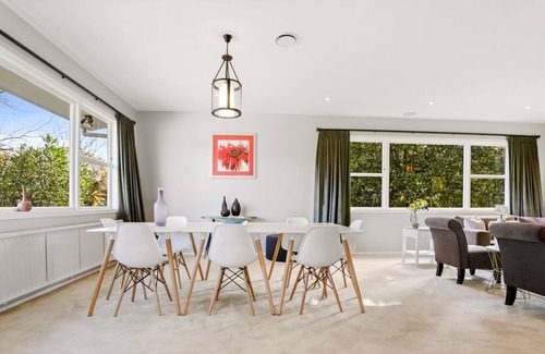 Whip up all your holiday favourites in the modern, fully equipped kitchen at Mansion Moncur. Ample counter space and an island bench make preparation a breeze, then let the dishwasher take care of the clean up while you take a stroll around the spacious shared garden to get back into holiday mode.