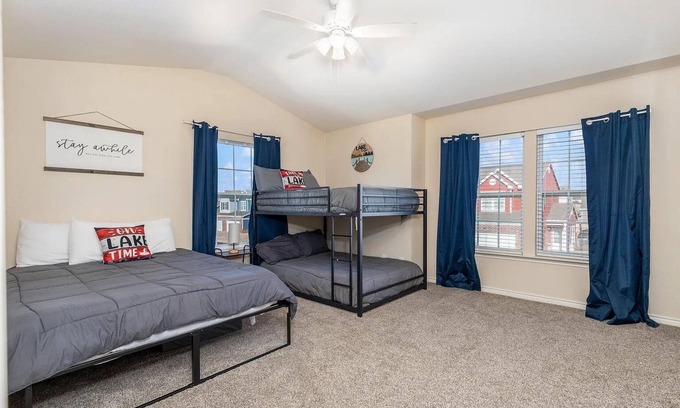 - 2 oversized bedrooms (each with 1 Queen and 1 bunk either Queen over Queen or Full over Full)