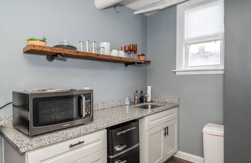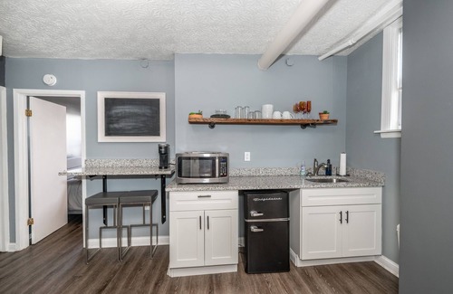 You will be at the center of all the action Newport’s business district and the surrounding areas have to offer in this charming 2-bedroom apartment, perfect for a couple’s retreat or an outing with friends. Right across the river from Cincinnati, the city of Newport is a destination in its own right, with bustling streets and plentiful nearby attractions. When you’re not out and about exploring the many local shops and restaurants, this 3rd floor apartment is ideal space to call home with a bright and open living space welcoming you as soon as you step through the front door. But perhaps one of its best features, this apartment is located right on top of the 927 Reserve Bourbon and Cocktail Bar, positioning you just steps away from happy hour or a night cap.