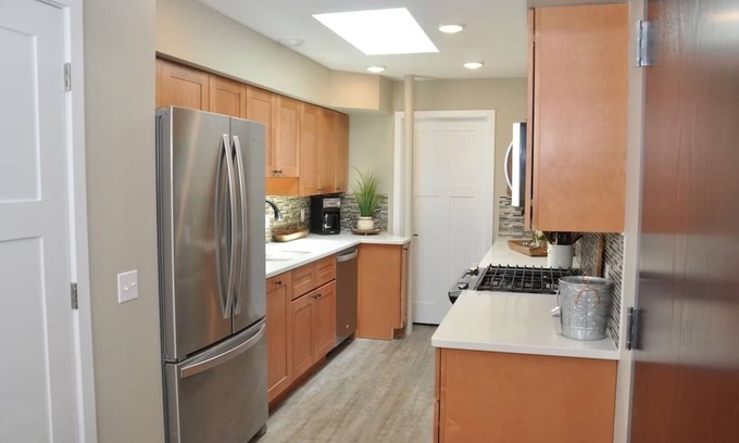 This unit comfortably sleeps 4 with a luxury queen bed in the Master Bedroom and two twin beds in the Guest Bedroom. Plush towels are provided in each of the 1 & 1/2 bathrooms. The suite's interior is luxurious, well-appointed, and boasts amenities like central AC, free WiFi, and a private washer/dryer. When you feel like staying in, the full state of the art kitchen provides everything you need to make delicious meals from scratch.