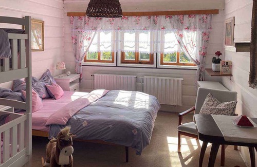 Montain hut With bathing possibility, playground and beautiful view of the woods has 4 Bedrooms , 2 Bathrooms, and max occupancy of 14 people. The minimum rental for this property is 1 nights, but this can change depending on the season you plan on staying. Previous guests have given good rated it, and VRBO labeled it a top-rated Cottage because of the excellent services rendered by the owner or manager of this Cottage, and has consistently provided great experiences for their guests. Most families or guests that use it recommend it to their friends and some of them are repeat guests. Cottage has a friendly neighborhood, and the Desna has interesting places to visit. If you want to learn more about the Cottage in Desna, such as places to visit and things to do nearby, you can check below to learn more.