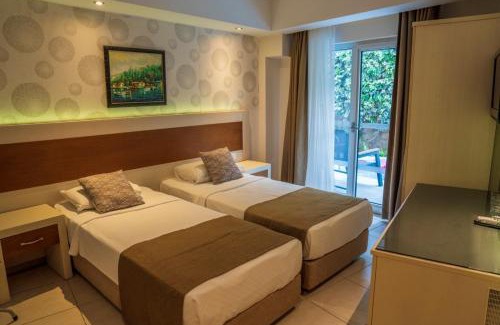 Montebello Resort Hotel - All Inclusive features a garden, terrace, a restaurant and bar in Oludeniz. Attractively located in the Oludeniz City Centre district, this hotel has a spa & wellness center, as well as a hammam. The hotel has an outdoor swimming pool, sauna, karaoke and a shared lounge. Free WiFi is accessible to all guests, while certain rooms are equipped with a balcony. The hotel has a playground. You can play table tennis and darts at this 4-star hotel, and car rental is available. Round-the-clock advice is available at the reception, where staff speak English, Russian and Turkish. Oludeniz Nature Reserve and Beach is a 9-minute walk from Montebello Resort Hotel - All Inclusive, while Butterfly Valley is 6.8 miles from the property. Dalaman Airport is 41 miles away.