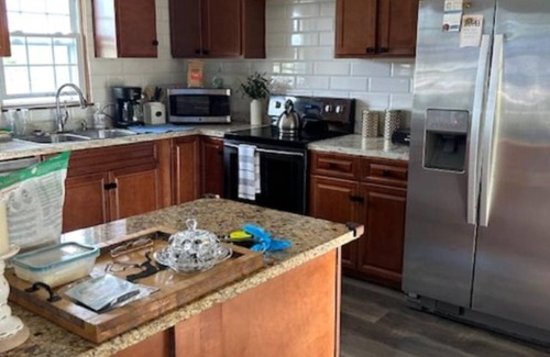 For one to three month stays. Charming completely remodeled 2-bedroom house. One car garage with opener plus additional off-street parking. Onsite washer and dryer. Full kitchen with microwave, full size side by side door refrigerator and coffee maker. Bedroom one has a queen size Tempra Pedic adjustable bed. Bedroom two has a regular queen size bed. Both bedrooms have smart TVs. High speed fiber internet. Pet friendly with fully fenced backyard. With fully furnished den and dining room with big screen TV. Dedicated home office, high speed fiber internet. Small front porch fully furnished large backyard patio. Only 15 minutes from Danville, 25 minutes from Richmond, 30 minutes from Lexington.