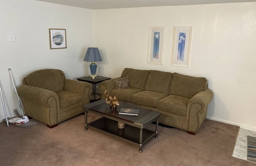 Comfortably furnished 750 square foot apartment on first floor of this quiet building. Four of the six units are set up as monthly furnished rentals catering to temporary workers and people transitioning to their next permanent home.