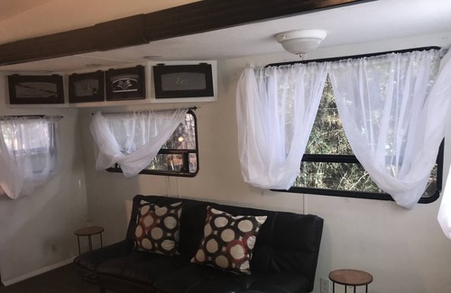 RV home sleeps three people. Desk with office supplies provided. Complete that last minute report then curl up in hammock with a good book. Common sitting area and BBQ and Firepit available. Cooler and chairs provided however we encourage you to bring your own. BBQ is available first come, first served. We are located in Waller 9 minutes from the Texas Renaissance Festival. We are 7 minutes from Grizzly Pines. The surrounding communities include Magnolia, Plantersville, Todd Mission, Hempstead, and Navasota.