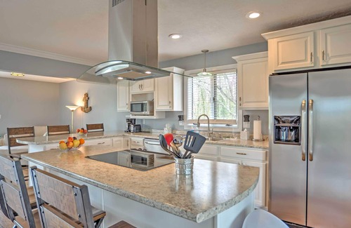 Nestled on a serene plot of Kentucky hillside overlooking Lake Cumberland, this gorgeous 3-bedroom, 2-bath vacation rental is the perfect escape to nature. This Monticello house is highlighted by an expansive multi-level deck, perfect for enjoying a meal al fresco. Head inside and you will find bright furnishings, an open floor plan, and a stunning kitchen, offering comfort as soon as you arrive. Don't forget to head to Conley Bottom Resort to rent a boat for endless possibilities for adventure!