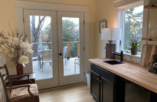 **New** Extended Stay/ Long Term Furnished Rental (min 30 days). Newly renovated 2 bedroom, 2 bath (sleeps 4 in beds + a sleeper sofa) house located in Woolen Mills neighborhood. Excellent location, minutes from the downtown pedestrian mall, UVA and Martha Jefferson hospitals, UVA grounds. Less than 10 minute's walk to Riverview Park with access to the Rivanna River and The Wool Factory (new restaurant, brewery, coffee shop)! This home has been professionally remodeled to exceed expectations. Inside you'll find tasteful decor in an open-design living space, top-floor primary suite, endless natural light and 3 decks with views looking out towards Monticello Mtn. Great option for a small family/couple relocating to Cville, travel nurses, visiting professionals.