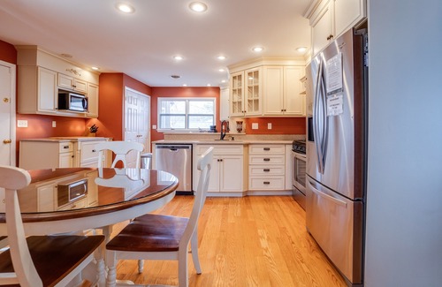 Pulling up to Moondance, you will find see the large English-style stone walkway outside of the house. Walking in the front door, you will enter the spacious entry area. To the left is the formal Dining room and walking through the Dining Room, you'll access the Kitchen. The Kitchen is fully furnished and has all the amenities you'll need for cooking those great family style meals.