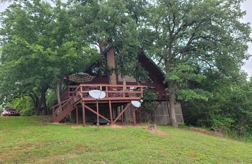 The Moonlight Bay Chalet is a cozy, 2-bedroom/loft/2-bath cabin perfect for a romantic lake getaway or a fun family vacation in the Arbuckle Mountain Area perched above a 10 acre private lake. All area attractions like the Turner Falls Park, The Chickasaw Cultural Center, the Chickasaw National Park and other local attraction are within a few minutes drive from the property.