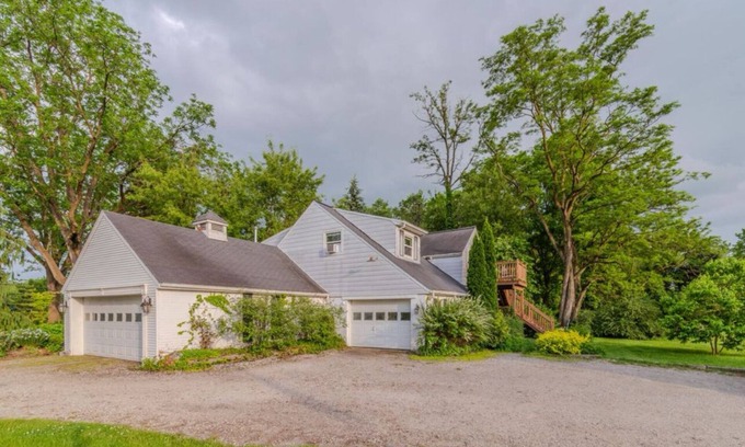 Forget your worries in the spacious and serene space. Tucked away on 5.5 acres, a pond, fountain, gardens and fruit trees. A private, quiet setting, but only 5 miles from Michigan Stadium and close to campus and downtown Ann Arbor.