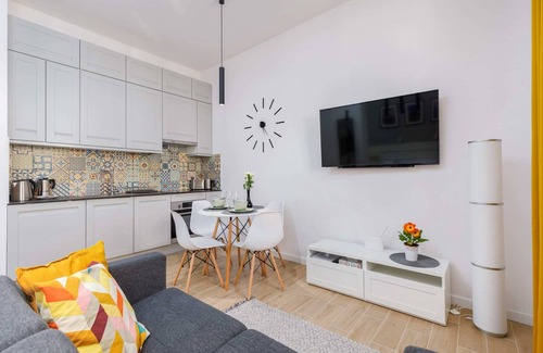 The modern interior of the studio apartment is suitable for a stay of 2 people. It is a comfortable solution for a holiday by the sea! The apartment has a spacious living area with a kitchenette and a bathroom with shower. There is a comfortable double bed and a sofa. The kitchenette is equipped with all the necessary appliances (toaster, oven, dishwasher) and a set for making your morning coffee (2 coffee machines and a milk frother). The décor is light and modern in colour, making this place extremely aesthetic and comfortable. The pleasant design and the complete equipment with the necessary kitchen and bathroom accessories guarantee a comfortable stay. The studio is equipped with a Smart Tv and wireless internet access. For a good start to a pleasant stay, we provide our guests with complimentary toiletries, towels and bed linen. The property has everything you need for rest and relaxation.