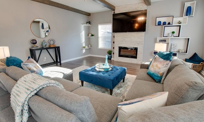 Bring the whole family to this gorgeous home with lots of room for fun. You'll have everything you need and more... enjoy live streaming on every TV. There's a variety of complimentary snacks and coffee something for everyone. Upstairs in the loft area there's games and toys for all ages... it's perfect for a fun game night. The master bathroom suite has a large spa tub, a great way to relax and let your hair down. The pictures don't do it justice you have to book to experience it, it's amazing!