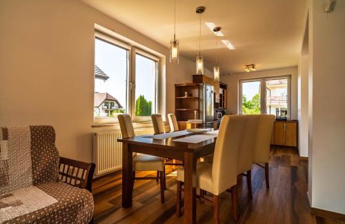 Offering a garden, Morze Apartamentów Nadmorski Azyl provides accommodations in Ostrowo. Private parking is available on site at this recently renovated property. On clear days, guests can head outside to enjoy the vacation home's outdoor fireplace or simply kick back and relax. Providing a terrace and garden views, the vacation home includes 3 bedrooms, a living room, flat-screen TV, an equipped kitchen, and 2 bathrooms with a bath and a shower. For added privacy, the accommodation features a private entrance. Ostrowo Beach is a 13-minute walk from the vacation home, while Gdynia Harbour is 29 miles away. Gdańsk Lech Wałęsa Airport is 42 miles from the property.