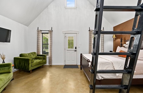 'Moss Cottage' - Feel the luxury in this cottage (one of 5!), nestled within the serene wedding venue grounds of our partner, Allegro! It sleeps 2 in the Queen sized bed in the loft and two on the queen-sized bed in the main area. The kitchenette is equipped with essential amenities, including a mini-fridge, dishwasher, coffee maker and Keurig, and a toaster oven, allowing you to prepare light meals and snacks at your leisure. See the Home Details for More!!