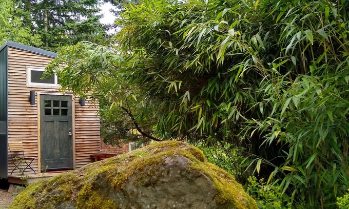 Moss Rock Retreat is a peaceful tiny home surrounded by an acre of hillside gardens. Tucked behind the magical Leach Botanical Garden in a forested neighborhood, Moss Rock has the serenity of a mountain retreat - but is only 20 minutes from downtown and PDX. Come for respite from the busy world, a quiet workspace, a creative getaway, a romantic weekend, or to explore the natural beauty of Oregon - all are possible in the comfortable intimacy of Moss Rock Retreat.