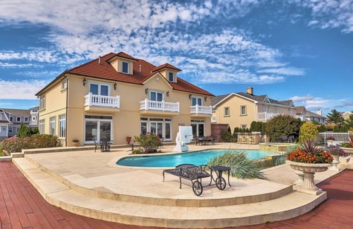 Beautiful home with fountain and marble floors in 3 story foyer which opens up to a wonderful floor plan of 5 bedrooms and 3 1/2 baths. Every bedroom has a balcony for viewing the heated saltpool and hot tub or the beautiful Barnegat Bay. The expansive patio and brazilian wood deck surround the pool and outdoor kitchen. Over 5500 sq. feet with every detail you can imagine. Wired with 4 zone Sonos system in every room.