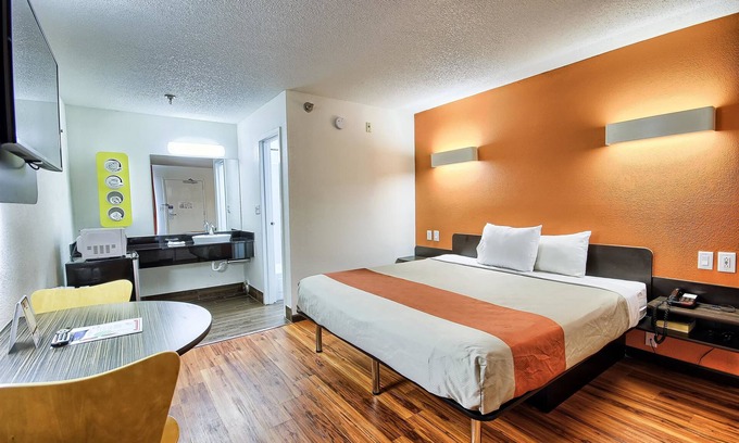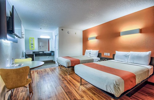 Motel 6 Columbus, OH - West offers 104 accommodations, which are accessible via exterior corridors and feature complimentary toiletries. Flat-screen televisions come with cable channels. Rooms have partially open bathrooms.