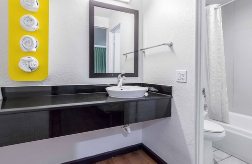 Motel 6 Riverside, CA - UCR East offers 56 accommodations, which are accessible via exterior corridors. Flat-screen televisions come with cable channels. Bathrooms include shower/tub combinations.