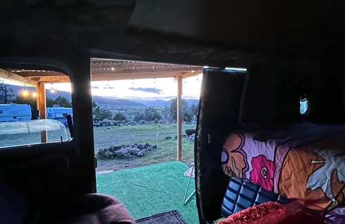 We have the 1970's Shaggin' Good Times Van - The Van D' Glamp with a private covered deck, solar power generator, and campfire pit and grill. We also have the 1980's Wilderness 16' Camper (The Glamper) with a working refrigerator and freezer, sink, coffee maker, and microwave.