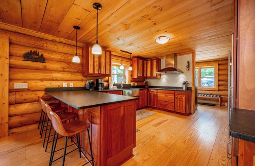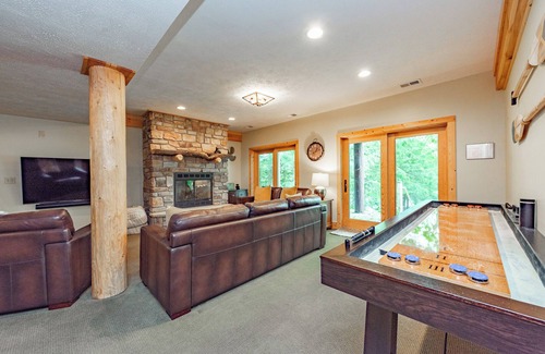 Nestled within the trees along a the quiet North Glade Cove, you will find a perfect stay at Deep Water Lodge. This stylish log home is complete with a beautiful great room, fully equipped kitchen, and various hang out and lounge spots. Enjoy mornings on the covered section of the deck with a fresh cup of coffee while taking in the filtered lake views and refreshing mountain air. Take a stroll down the landscaped stairs to lake to relax around the campfire and prepare for your next days on and around the lake. Located right next to the Patterson Boat Company docks and gas station, you have easy access to gas up before heading out for an amazing lake day! When you return, hop in the hot tub and let the bubbles soothe your muscles as you wind down in the evening. Finish out your day gathered back on the main deck relaxing on the couches or rocking chairs before finally settling down in bed. Endless possibilities await you with a stay at Deep Water Lodge. What will your experience be? Book today to find out.