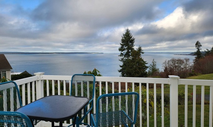 I can't stop talking about the water and mountain views! Sit on your wrap-around deck and enjoy the sunsets, passing ships, and soaring birds. Walk to the Bush Point Wharf (10 minutes down, 15 minutes back up-hill) for beach access. Spend time playing the games provided in the daylight basement. When you decide to leave and explore, the town of Freeland, with groceries and restaurants, is a 10-minute drive. Coupeville and Langley are each 20 minutes away.