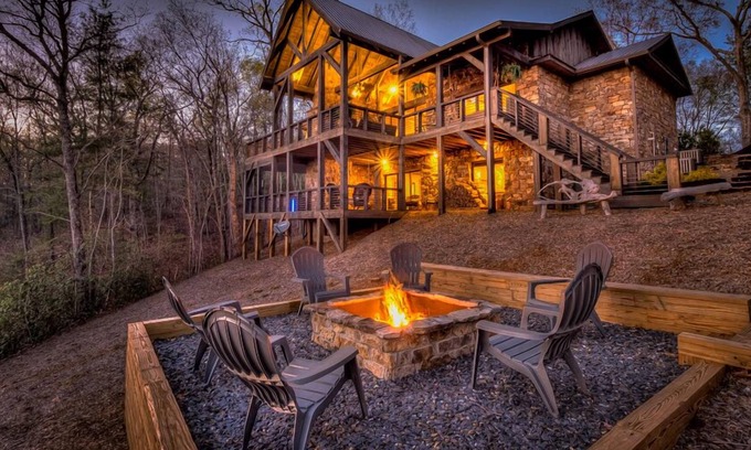 Mountain Bear Pass- Large Exclusive Lodge Style Home Views Outdoor Fireplace and Firepit | House in Mineral Bluff