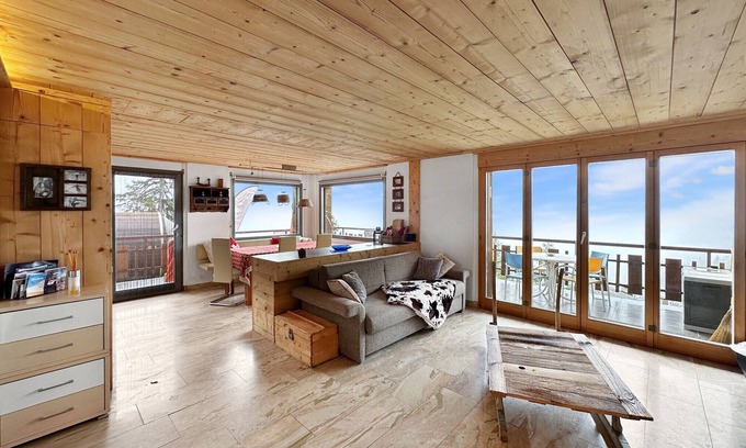 About the AccommodationWelcome to this bright and spacious apartment, ideally located in a quiet chalet just a short walk from the ski lifts!You'll enjoy a fully equipped open kitchen connected to a cozy living room and dining area, all bathed in natural light through large glass doors. Step out onto the south-facing balcony, complete with a table and chairs the perfect spot to relax with a coffee or glass of wine while taking in the mountain view.The apartment features a private bedroom with a comfortable double bed (two separate mattresses), and the living room includes a double sofa bed, allowing up to 4 guests to stay comfortably. Special perk: a commun outdoor sauna available for your use throughout your stay ideal for unwinding after a day on the slopes or trails. AmenitiesPrivate bedroom with double bedDouble sofa bed in the living roomBathroom with shower, toilet, and sinkHigh-speed Wi-FiTV with a wide selection of channelsFully equipped, functional kitchenBlackout blinds in every roomAmple storage spaceTiled floors throughoutSecure entry hall before the apartment entrance Access ParkingPrivate parking space in front of the chaletLocated in a quiet residence with just 6 apartmentsJust 200 meters from the gondola lift (you can ski to and from the apartment!)Convenient access via PostBus (Car Postal): Arbaz Anzère Ayent line Summer Bonus: Anzère Liberté PassFrom June to October, enjoy the full benefits of the Anzère Liberté Pass available for free from the Anzère Tourist Office with your booking confirmation:Free entry to the thermal baths50% discount on ski liftsAccess to numerous summer activities: tennis, Fun Park, Bisses Museum, and moreWeekly village events and activitiesThis apartment is perfect for nature lovers, skiers, hikers, or anyone looking for a peaceful mountain getaway with modern comforts all year round.