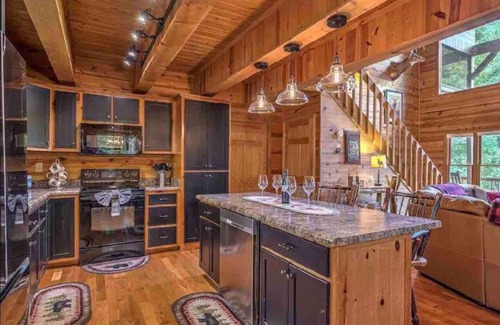Mountain Breeze Retreat is a split log, cathedral-ceiling showstopper. It offers breathtaking mountain views that seems to go on forever, with brilliant sunsets of purple and gold. Mornings are just as magical, with a western view of distant ridges clouded in a heavy mist that rises from the creeks that run between them.