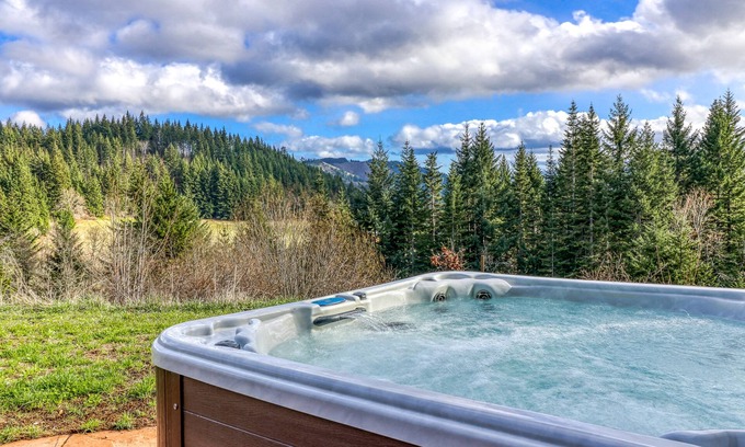 Enjoy views of snow-capped Mt. Hood from your private hot tub at this modern cabin in White Salmon! After a day of wine-tasting, hiking, or enjoying other outdoor activities, you'll come home to five acres of woodland-adjacent land, a private patio, and a gas grill where you can prepare meals before retreating indoors for family movie night!