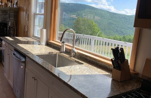Beautiful and enchanting chalet with breathtaking panoramic mountain views. FULLY AIR CONDITIONED (and of course heated). Fully equipped just renovated kitchen with stainless steel appliances and granite countertops. Main bathroom has just been fully renovated. Windows galore to take in the extraordinary scenery. Wrap-around deck and a cathedral ceiling in the recently renovated great room. Eat out on the deck or lounge to take in the views. Sit outdoors around our fire pit. Very private, but easily accessible. Located nearby to the quaint towns of Margaretville, Roxbury, Andes and Phoenicia. Just 1/2 hour from Woodstock and 2 1/2 hrs from NYC. The chalet is fully equipped. Free wireless high speed Internet access. 55" Smart HDTV. All activities nearby such as tennis, skiing, swimming, canoeing, tubing, golfing and hiking. Just 7 minutes from Belleayre Ski Center and Lake and only 5 minutes to Hanah Mountain Resort and Golf Club. Great restaurants and local breweries.