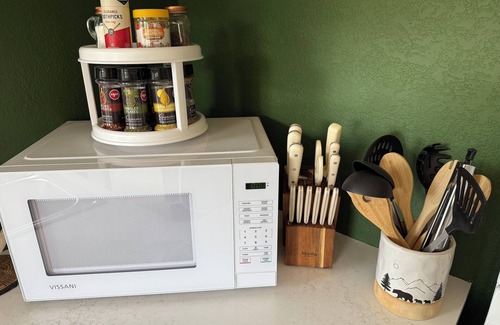 With an open concept kitchen, you can enjoy having breakfast with a Mountain View! Best part: You don’t need to pack anything other than food, we’ve got the rest (spices, mixing bowls, foil, ziplocks, etc)!