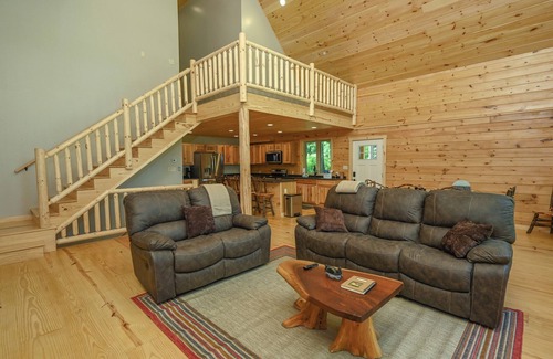 You will love the convenience, style, and cozy warm feel of this beautiful log cabin. It is the perfect home to come together with friends and family. Spend summer days on the lake, hiking the beautiful trails at nearby Deep Creek State Park, or staying back simmering in your outdoor hot tub or roasting marshmallows by the outdoor fire pit. Be sure to check out the breathtaking views and waterfalls at Swallow Falls State Park. When the cold weather hits you will find easy access to the adventurous slopes at Wisp Ski Resort for snowboarding, skiing, as well as snowtubing. When everyone is ready to settle in be sure to build a fire in any of the 2 indoor stone fireplaces or outdoor fireplace on the back deck. Warm up and take a bath in one of the 2 custom stone tiled bathtubs with beautiful vaulted ceilings for a relaxing experience. No matter the weather, this cabin is sure to please with a plethora of great amenities at your fingertips. Other amenities to include a game room with a ping pong table, air hockey table, shuffle board table, foosball table, and the great room is stocked with board games, puzzles, cards, poker chips, coloring, and more! There is no better getaway than Mountain Escape!