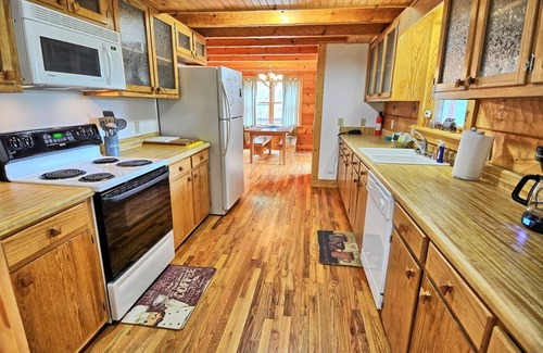 Our kitchen is fully stocked with most cooking utensils to prepare your family meal and clean up will be a snap with the dishwasher. The kitchen has a regular 12 cup coffee maker AND a Keurig, toaster, cookware, dinnerware and etc. The dining table seats up to 6 with 2 wooden benches. Enjoy a meal using our gas grill on the deck. The living room has a gas fireplace for those cold fall/winter days (fireplace is seasonal).