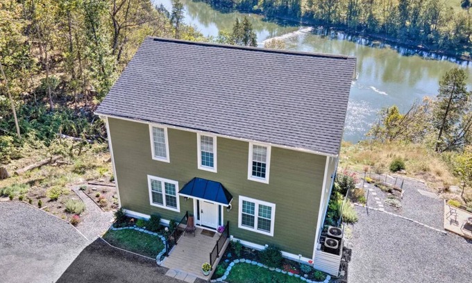As you can see in the photos, this beautiful home is built on the side of a mountain! The benefits are you really feel like you're looking over into the Shenandoah river but guests should exercise caution when outside the home. Please do not attempt to trek down the mountain to reach the river as it is very steep and only for viewing from the home.