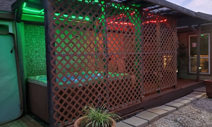 You will stay in a single story home with 3 bedrooms and 2 full baths on approximately 6 acres. The acerage includes cedar and oak trees with plenty of wildlife around the property. The house has enclosed porches and a pathway will lead you to a BBQ and fire pit area with table and chairs. Wood for fire pit and propane for grill are provided. Also included is a five person hot tub which can be used(depending on weather). The outdoor porches have tropical plants to make your stay more enjoyable and relaxing.