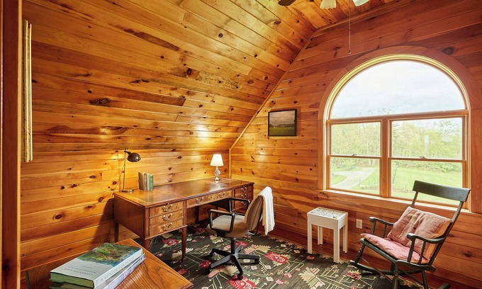 Welcome to The Mountain House & Cottage at Seminary Hill, a serene haven perched atop a ridge overlooking the Delaware River, where the beauty of nature unfolds through breathtaking views in every direction.