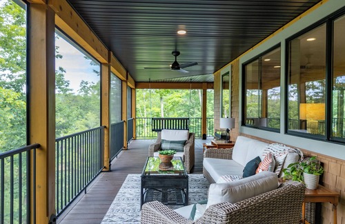 Porch Days is a newly built, modern lakefront home on a quiet, private cove of Claytor Lake. The spacious home features a large chef’s kitchen, 4 bedrooms, 4 baths, two living areas, and 1800+ square feet of screen porches on 300 feet of private shoreline.