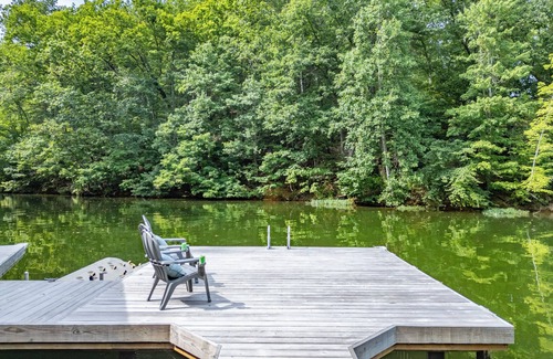 Outside a large fire-pit with Adirondack chairs overlook the cove. A large patio with space for a game of ladder ball or cornhole is lit with outdoor string lights. An in-ground height adjustable basketball hoop and tetherball are located in the driveway, which has enough room for a BYO pop up Pickleball court. Private deep-water dock with ladder provides easy entry to the cove for a swim. Venture out on the lake with paddleboards (4), kayaks (6) and hydro bikes (2). Pull out the lily pad and lake floats for hours of fun. Life jackets of all sizes are provided. Bring your own boat or rent one from the local marina. Inquire about launch locations for your boat.