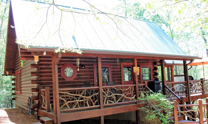 Relax & enjoy our newly remodeled cozy mountain cabin nestled in the woods on 2 private acres with acre size pond. If it's privacy, peace and tranquility your looking for you've found it. Just far enough from all the hubbub to have gotten away from it all yet 20 minutes from town. Use it as a base for all your outdoor adventures or get comfy on the screened-in porch and just take it all in. The property is a private setting abundant with wildlife like deer and native birds. The cabin is comfortably appointed and has all the modern conveniences. Wake up with your morning coffee on the screened in porch to the sound of birds. For the outdoors men try your luck at catching a Bream or Bass from the pond right off the private dock. We do not provide fishing poles or gear. Whether it's a friendly game of horse shoes, or an afternoon siesta the cabin's got you covered. Spend your evenings around the campfire making s'mores or relax on the porch. If it's inside activities your looking for there are a few games, Dish or Netflicks to watch on the Smart TV. Centrally located and close to the most popular area destinations and activities. Enjoy all our area has to offer breweries, wineries, and great restaurants. Close to the Appalachian Trail there's lots of outdoor fun including white water rafting and zip-lining in the Nantahala Gorge ! Pets need to be pre-approved, please scroll down to read our house rules regarding pets.
