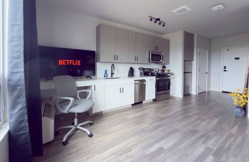 Experience luxury at LOCAL Boise`s King Bed Studio, perfectly situated near downtown, St. Luke’s, Julia Davis Park, BSU, and an array of vibrant shops and dining. Guests love the unbeatable convenience—Whole Foods is right next door for anything you need. Enjoy premium amenities like a coffee bar, co-working space, pool, and a rooftop deck with city views. Secure parking is available. Your urban adventure starts here with comfort, style, and everything Boise has to offer right at your doorstep.