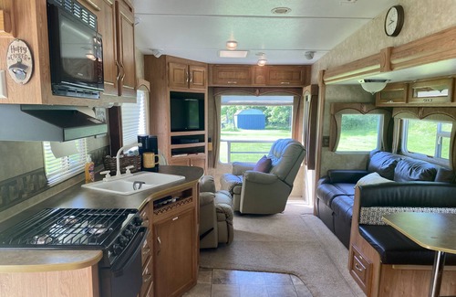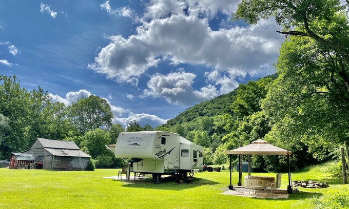 Come and enjoy Almost Heaven, Wild & Wonderful West Virginia. You will be staying in our beautiful 35ft Mountain Mama RV. This RV provides accommodations for 4. One queen bed and sofa convertible sleeper. All your linens will be provided. You will find a full stocked kitchen with all cooking necessities. Here you will have your own backyard space. Enjoy a soak in the hot tub, a relaxing camp fire. A grill will be provided, so you can enjoy a fun cookout while sipping on some of your favorite cocktails or some sweet tea.
