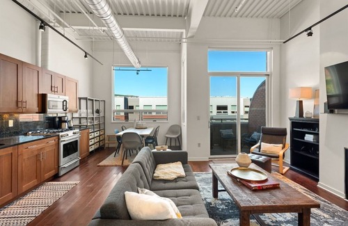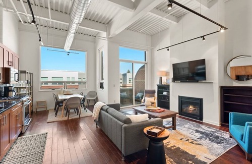Each day begins with Colorado sunshine flooding into your top-floor loft, where high ceilings and a warm gas fireplace invite you to linger just a little longer. The open-concept kitchen, dining, and living space is designed for connection—whether you're sharing a home-cooked meal from the fully equipped kitchen, indulging in takeout from the many eateries just outside your door, or gathered around the large smart TV for a family movie night.