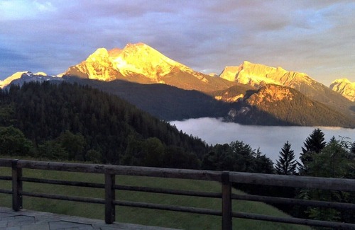 Mountain panorama with a view of the valley, totally alpine pasture landscape is located in Schoenau am Koenigssee. Mountain panorama with a view of the valley, totally alpine pasture landscape provides accommodation, featuring Ocean View, Balcony/Terrace, Bedding/Linens, among other amenities. This Apartment features Ocean View, Balcony/Terrace, Bedding/Linens, to make your stay a comfortable one.