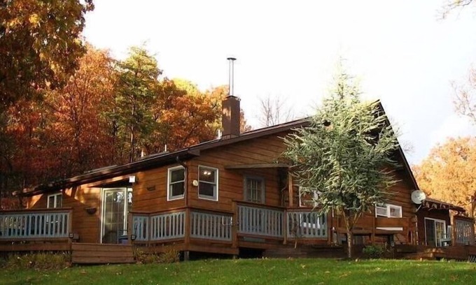 Beautiful Secluded Log Home on 5 acres of wooded grounds, just minutes from Raystown Lake, perfect for your vacation get away. This home has 3 beautiful bedrooms with a queen sized bed in master bedroom, full and twin bunk bed in second bedroom, queen and twin beds in loft area. Five beds allow an occupency of 6 adults or 8 people with children. Wrap around deck fully furnished with outdoor table, seating, and gas grill perfect for outdoor dining and relaxation. A fire pitt is located a short walk from the deck. Spectacular views of the mountains. Within minutes from 7 public boat launches.