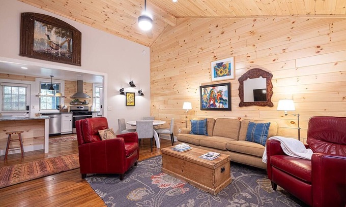 Escape to the serenity of the mountain wilderness in this beautifully furnished 2-bedroom, 1-bath cottage, just a stone's throw away from the legendary Chattooga River. Tucked away in the heart of fly-fishing country, this retreat offers an idyllic blend of modern comforts and rustic charm.